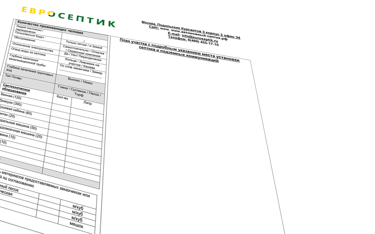 Для детального подбора септика выезжает инженер и подбирает септик под Ваши условия более чем по 20 параметрам: